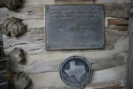 “Stables used over 100 years ago to prevent Indians from stealing horses on the Chas. Harris ranch on Cherokee Creek 14 mi. south San Saba; given in memory of Eula Gray Kuykendall (1888-1958) by her husband Warren U. Kuykendall and Mr. and Mrs. Kenneth Kuykendall and her other children”
